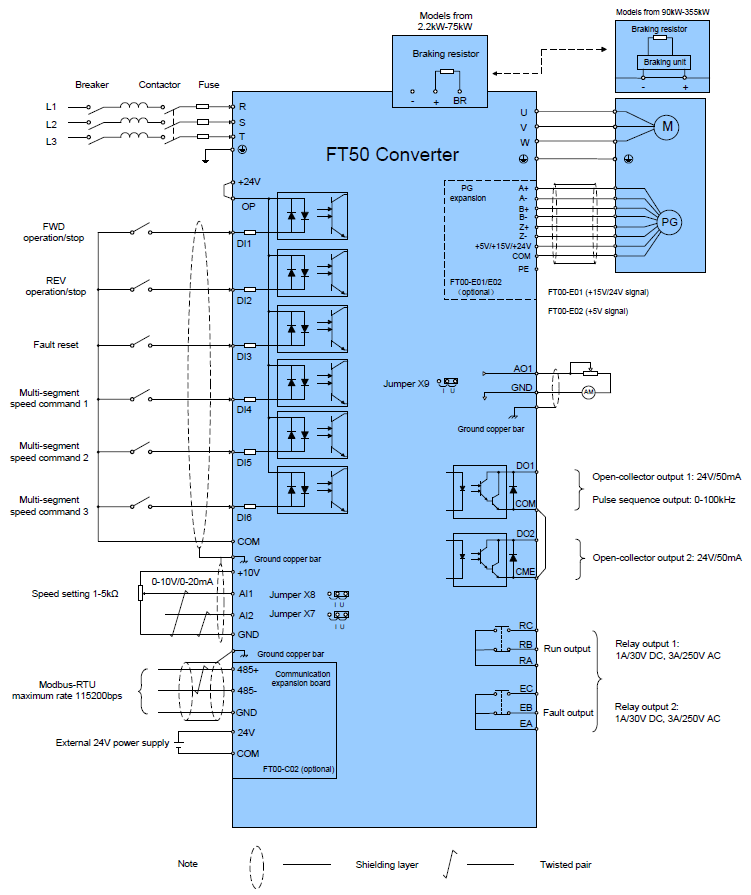 The FT50 is a standard general purpose frequency converter / Variable Frequency Drive (VFD).
