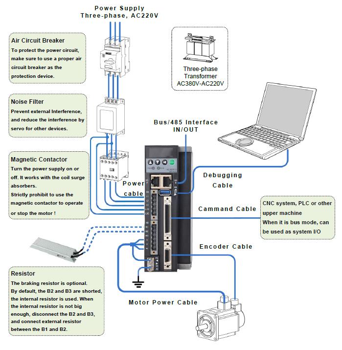 3. The internal I/O of the servo drive can be expanded to the I/O of the system PLC.
